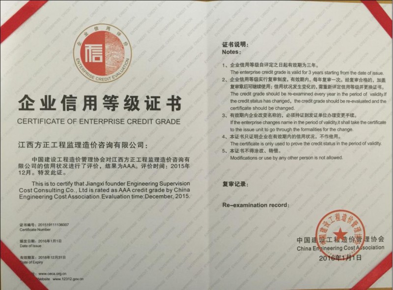 江西方正工程監(jiān)理造價咨詢有限公司于二OO三年五月在南昌市工商行政管理局注冊(注冊號:360100210024211),成立的有限責任公司,先后取得建設部及江西省建設廳頒發(fā)的建設施工工程造價咨詢企業(yè)資質、招投標代理機構資質、工程監(jiān)理資質及江西省財政廳頒發(fā)的采購代理資質,是專門從事工業(yè)與民用建筑工程造價咨詢、工程建設招投標代理、工程監(jiān)理及采購代理的公司。
